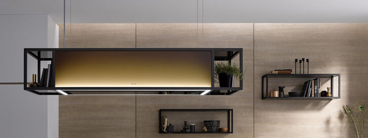 Die Deckenlifthaube Skyline Frame von berbel überzeugt durch Design und Funktion auf höchstem Niveau. Mit ihrer geradlinigen Form und dem mattschwarzen Rahmen fügt sich der Dunstabzug harmonisch in moderne Küchen ein. Sie haben dabei die Wahl zwischen zwei Varianten: mit oder ohne Regalelementen an den Seiten. Noch dazu verfügt die Dunstabzugshaube Skyline Frame über eine attraktive Effektbeleuchtung in zwei Farbtemperaturen. Kühl schimmerndes Licht setzt erfrischende Akzente, während das warme Licht einen behaglichen Schimmer in die Küche bringt. Für ihr umwerfendes Design hat die berbel Skyline Frame 2019 den Red Dot Design Award „Best oft he Best“ gewonnen. Holen Sie sich den Design-Liebling nach Hause!