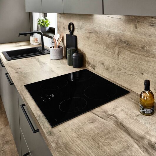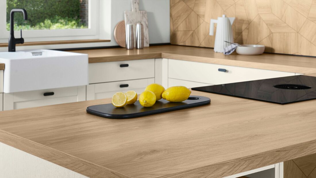 Nicht jedes Küchenarbeitsplatten-Material ist auch als Spritzschutz geeignet. Gleichzeitig ist ein einheitlicher Look, bei dem Arbeitsplatte und Küchenrückwand in derselben Optik gestaltet sind, aktuell sehr beliebt. Dann kann eine spezielle hitzebeständige Nischenverkleidungen in denselben Dekoren nötig sein.