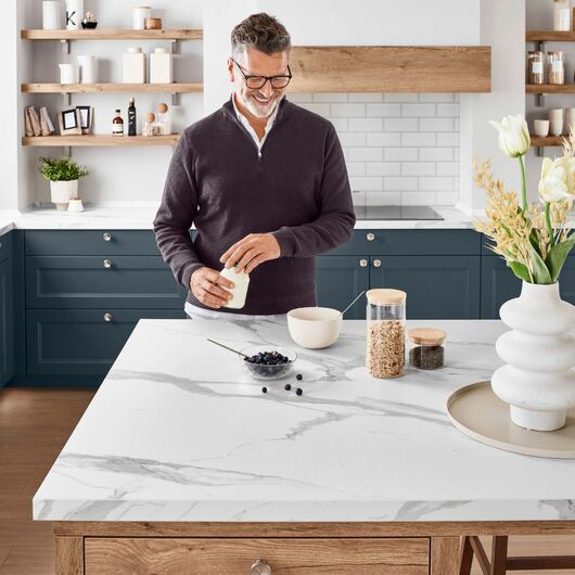 Wenn Sie herausgefunden haben, welches Küchenarbeitsplatten-Material am besten zu Ihrem Alltag passt, können Sie das Design der Arbeitsplatte festlegen. Welche Dekore jeweils verfügbar sind, hängt von Ihrem Küchenhersteller ab.