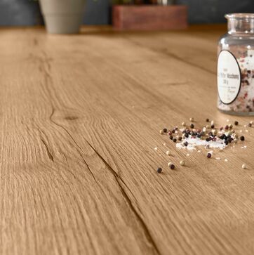 Wenn Sie das Material der Küchenarbeitsplatte auswählen, sollten Sie die Frage nach ihrer Optik erstmal ausblenden. Denn dank moderner Produktionstechnologien können die verschiedensten Materialien zum Beispiel mit authentischen Stein- oder Holzoptiken ausgestattet werden. Mit bloßem Auge ist nicht mehr zu erkennen, ob es sich um echten Naturstein handelt, oder eine keramische Alternative. Bei der Nutzung der Arbeitsplatte kann dieser Unterschied aber entscheidend sein, da die Materialien unterschiedliche Eigenschaften aufweisen.